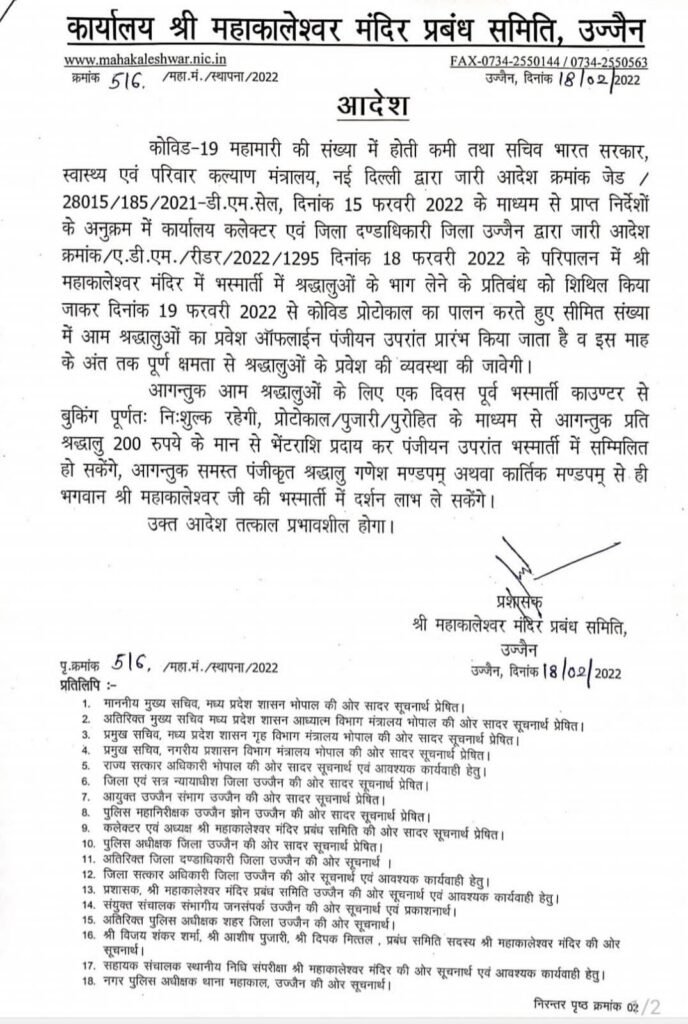 तीसरी लहर के चलते 57 दिन से भस्मारती में बंद था प्रवेश, तय दिनों में आम श्रद्धालुओं को भी मिलेगा गर्भगृह में प्रवेश