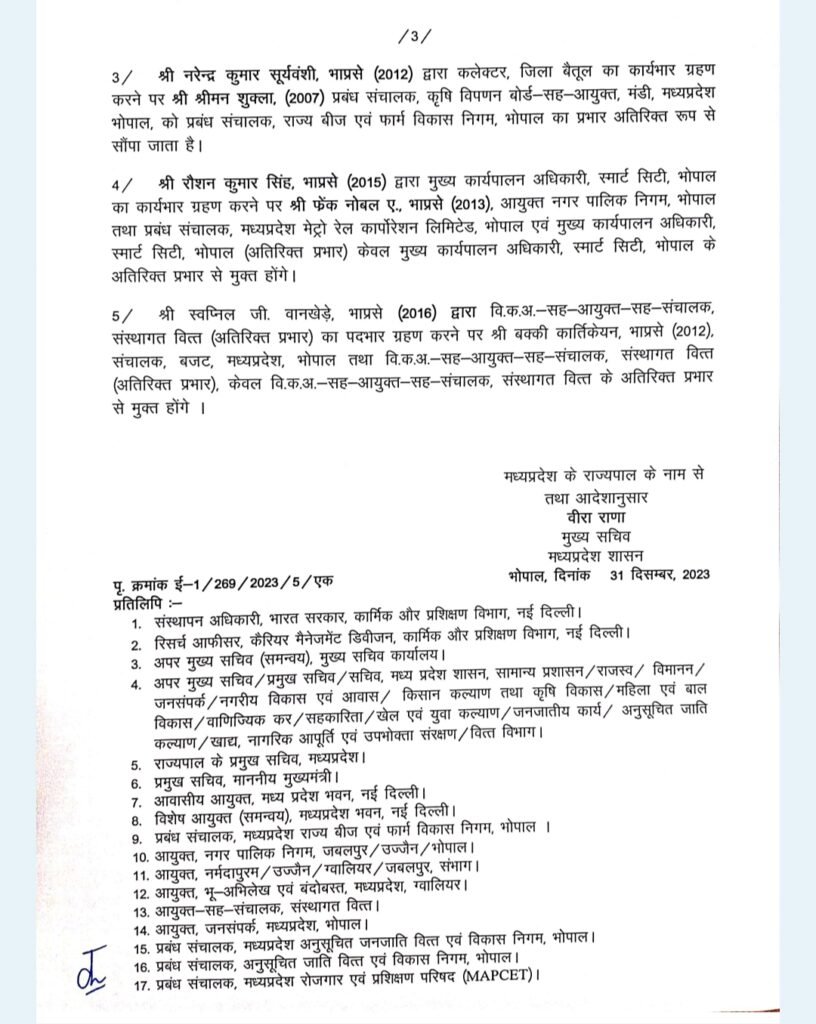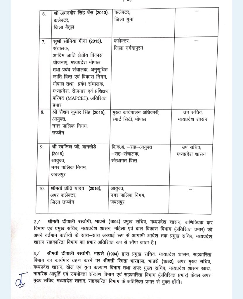 प्रदेश में 10 आईएएस के तबादले, निगम आयुक्त को स्मार्ट सिटी भोपाल की कमान