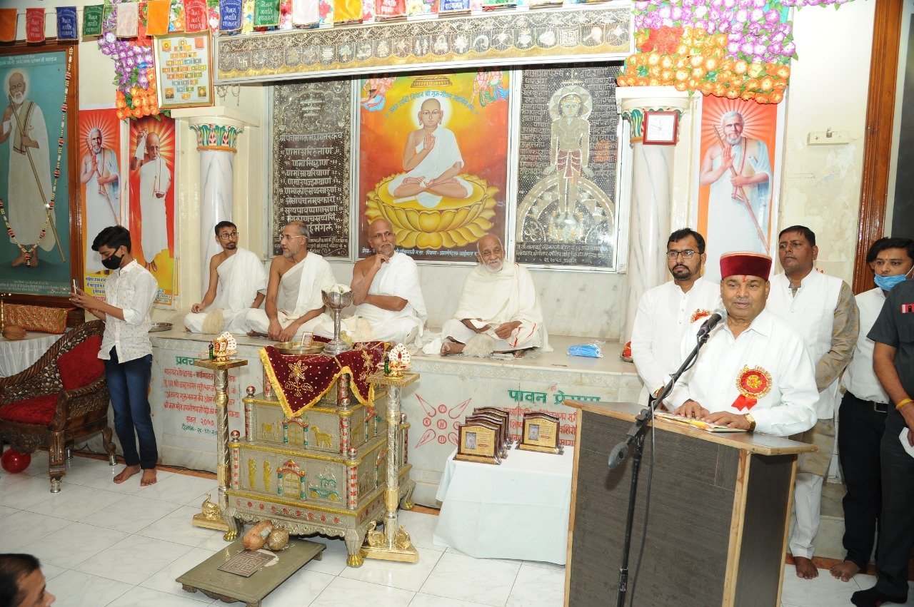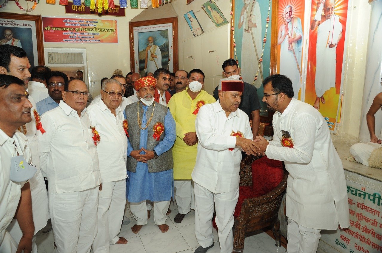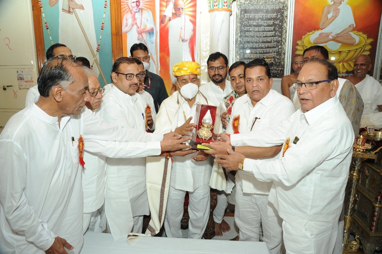 उज्जैन। श्री सिद्धचक्राधान केसरियानाथ महातीर्थ खाराकुँआ उज्जैन पर श्री ऋषभदेव छगनीराम पेढ़ी ट्रस्ट के संयोजन में उज्जैन सकल जैन श्वेतांबर समाज की ओर से माननीय राज्यपाल कर्नाटक डॉ. थावरचन्द गेहलोत जी का शनिवार को सारस्वत अभिनंदन समारोह आयोजित हुआ। राज्यपाल बनने के बाद पहली बार अभ्युदपुरम् गुरुकुल प्रणेता आचार्य देवेश पूज्य श्री मुक्ति सागर सूरी जी महाराज साहब के दर्शनाथ पधारे डॉ. गेहलोत का समाज के विभिन्न 25 ट्रस्ट मंडल-संघ द्वारा अभिनंदन किया गया। बता दे की उनका व आचार्य श्री का विगत 20 वर्षों से काफी निकट संपर्क है। ट्रस्ट मंडल ने सुसज्जित रजत कलश, शॉल, श्रीफल, मोती की माला भेंट कर उनका सारस्वत अभिनंदन किया।